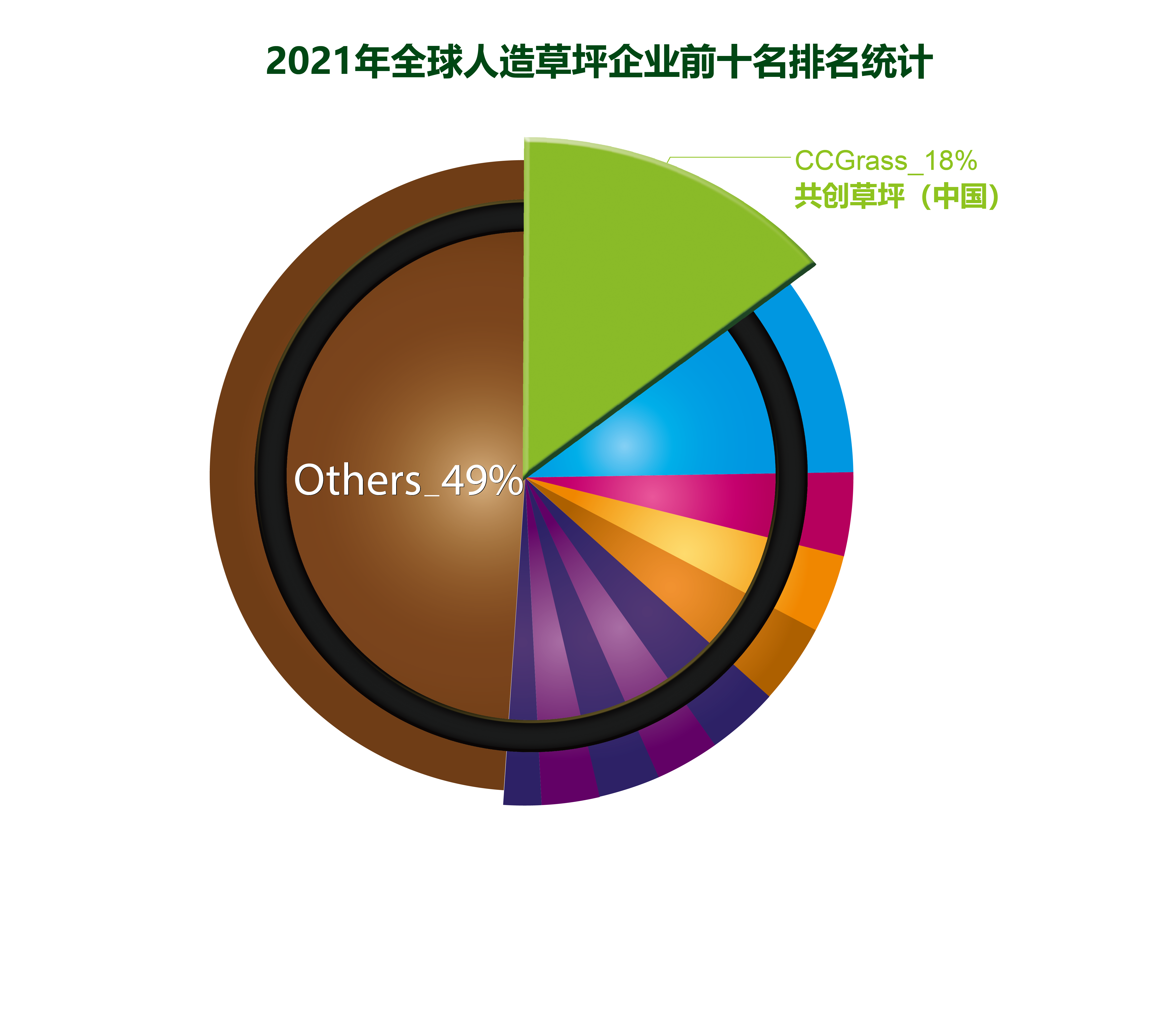 3月,人造草坪行業(yè)權(quán)威調(diào)研機(jī)構(gòu)AMI顯示:2011年共創(chuàng)人造草坪有限公司的市場(chǎng)份額為10%,位居全球第一。